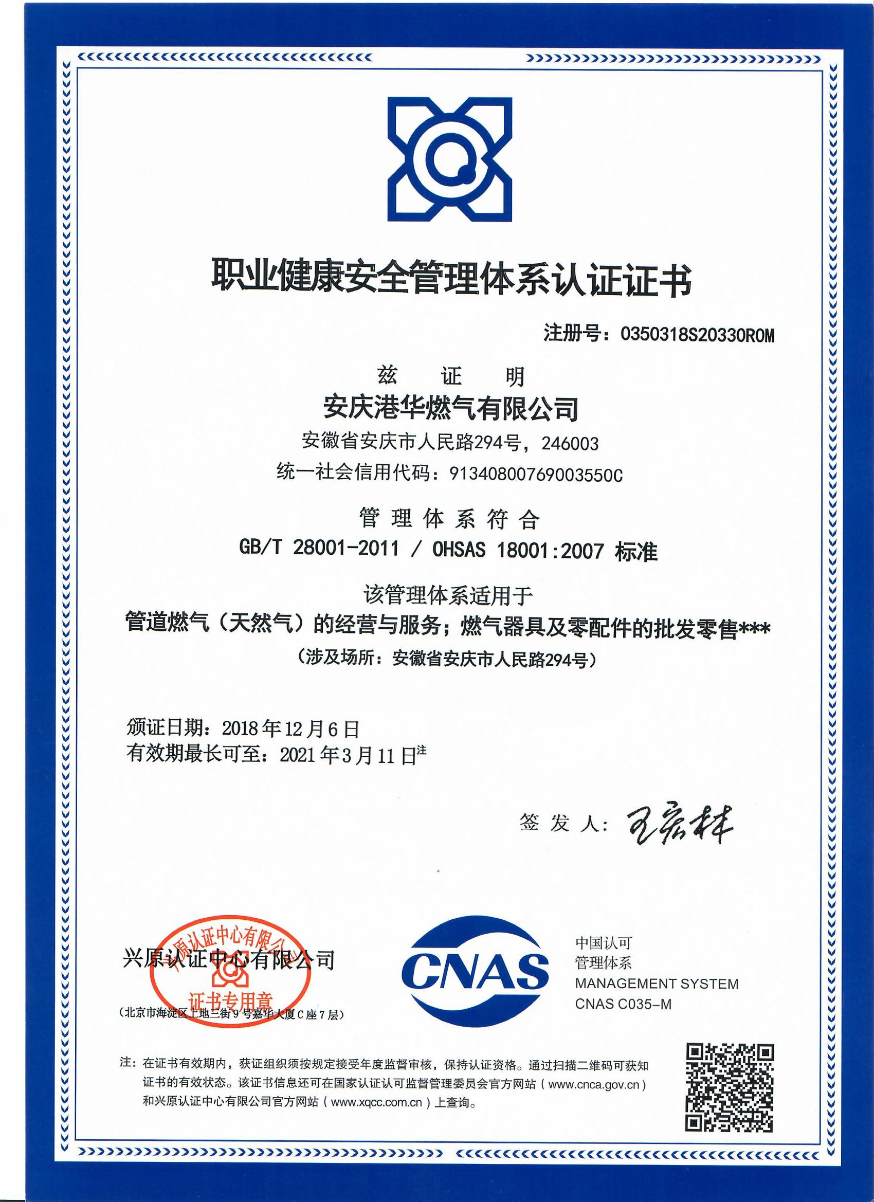 日前,安慶港華順利通過了“質(zhì)量、職業(yè)健康安全管理(ISO9001、OHSAS18001)”雙體系認(rèn)證審核。