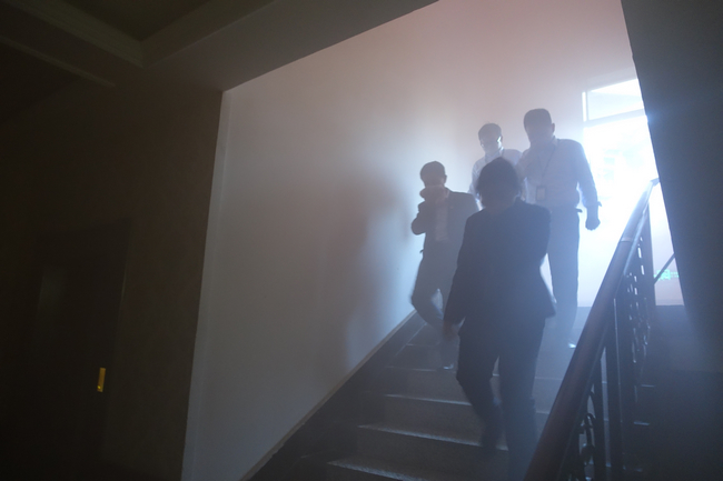 下午15:30分,隨著警報響起,各樓層疏散組長迅速行動,及時引導(dǎo)各層員工沿逃生疏散路線有序撤離。全體員工依照預(yù)案要求,用濕毛巾捂住口鼻快速前進(jìn),僅用了5分鐘即安全撤離到公司大樓警戒線外的安全地帶。隨即,各樓層疏散組長清點人數(shù)后向演練總指揮報告疏散情況,整個應(yīng)急疏散過程,秩序良好,反應(yīng)迅速。