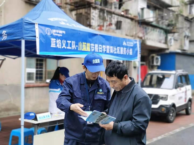 當(dāng)天一大早,“小藍(lán)帽”們就在小區(qū)內(nèi)搭設(shè)起便民服務(wù)站,積極為過往的小區(qū)居民提供灶具免費(fèi)維修、燃?xì)馐褂脝栴}解答等服務(wù),現(xiàn)場服務(wù)居民50余次。同時,他們還通過擺放安全展示牌、發(fā)放《燃?xì)獍踩脷馐謨浴返刃麄餍问?,進(jìn)一步增強(qiáng)小區(qū)居民安全用氣意識。
